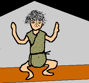 あんにゃが見上げると、ひとりのこきたねえじさ(じいさん)が天井にはりついておったと。