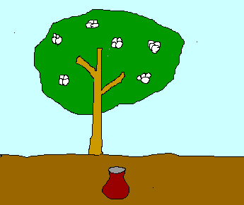| むかし、あったてんがな。 村の男しょが二人で山仕事に行ったんだと。働いてお昼になり、昼めしをくったと。 ほうしると、一人がそのまんまねむってしまったと。もう一人はねむらずにいたがや。すると、ねむっていた男のはなの穴からアブが出てきて山の方へと行ってしまったと。 また少したつと、アブがもどってきて、ねむっていた男のはなの穴にもどったと。 ほうしたら、男は目をさまして、 「おもしい夢だったぞ。」 というた。 「どんな夢だったが。」 「おら、むこうの山に咲いている白いつばきの木の下に、かめがうまっている夢を見たぞ。」 「そうけ、その夢おらに売ってくれや。」 「そげんにほしいならやるわ。」 「いや、人の見た夢をただでもらうわけにはいかんがて。」 というて、酒一升で買ったと。 それから、夢をかった男は、むこうの山で白いつばきの咲いている木をさがしたら、やはりあったと。 男はその下をいっしょけんめい掘ったれば、かめがでてきてその中に小判がいっぺこと入っていたがや。 ほうして、男はしんしょがようなったって。 いちごがポンとさけた。 |